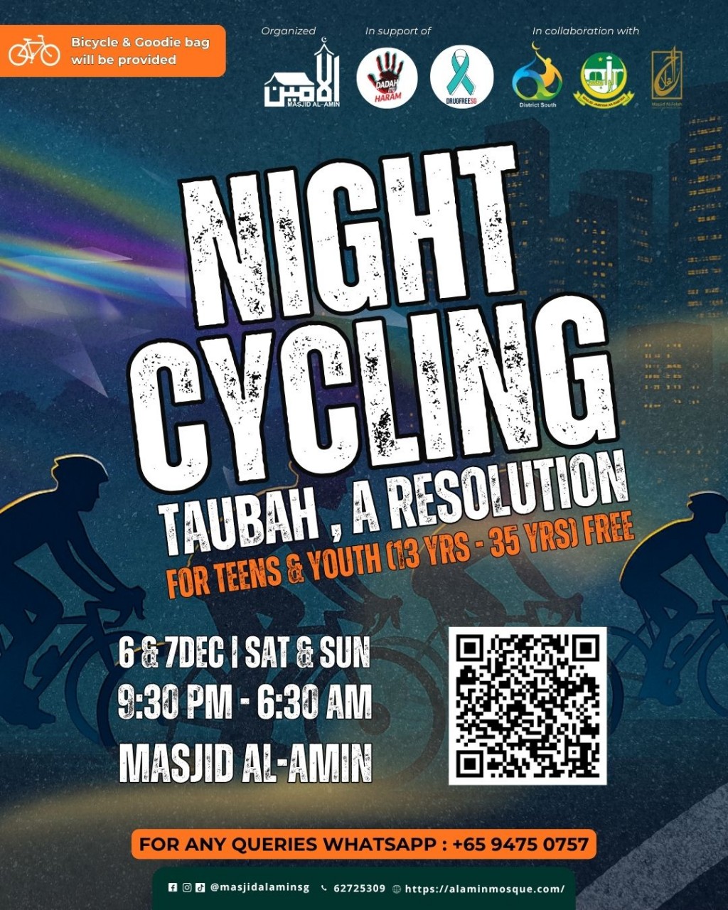 cycle youth dadah friends night cycling masjid al-falah town masjid al-amin event singapore